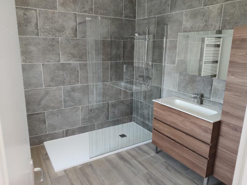 A l'étage : palier, deux chambres, salle de bains avec douche italienne.