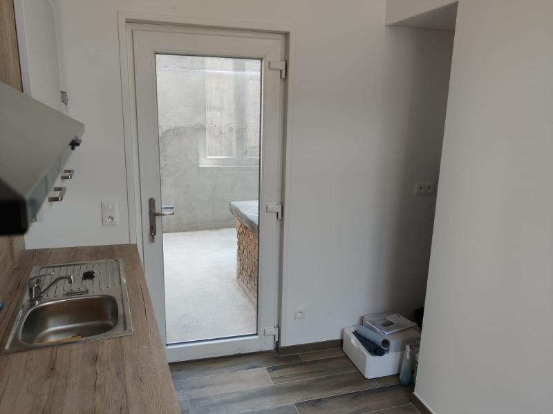 comprenant entrée, séjour, cuisine en partie équipée, wc, petite cour.
