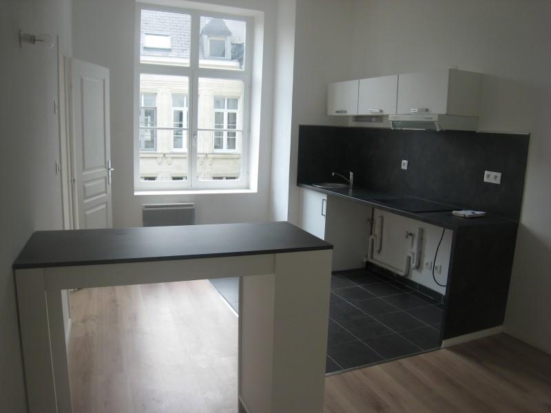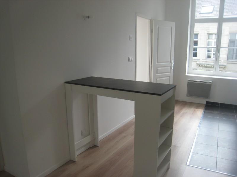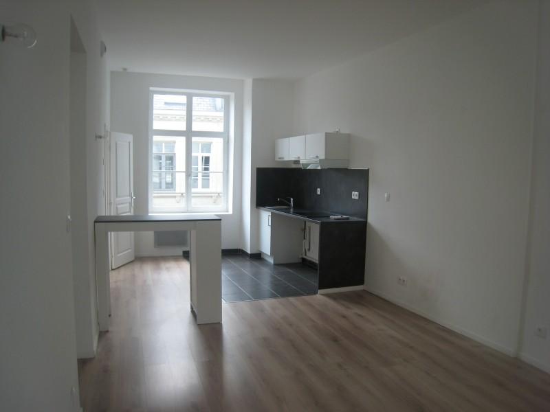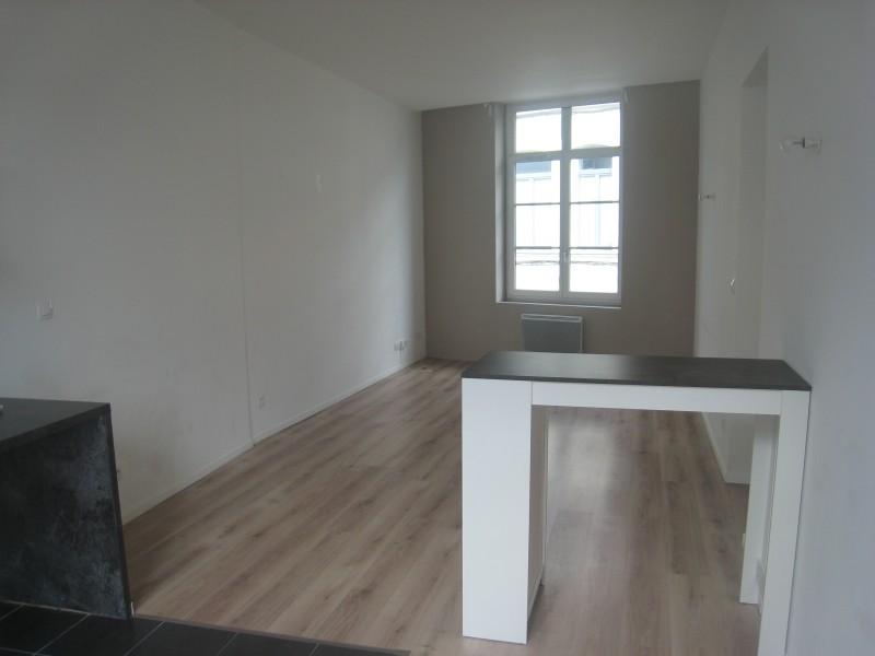 Bel appartement type 2 au coeur de la vieille ville, au 1er étage d'une résidence de caractère, comprenant hall d'entrée, séjour, cuisine américaine aménagée (plaques, hotte aspirante), chambre, salle de douche, w.c.
