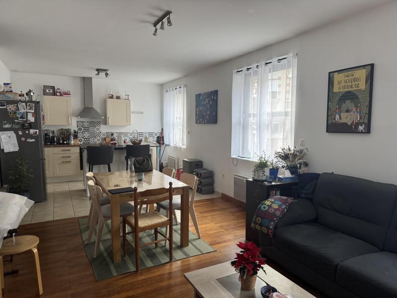 comprenant entrée, séjour salon ouvert sur la cuisine équipée (hotte, plaque de cuisson, four), salle d'eau, wc séparé, 3 chambres.