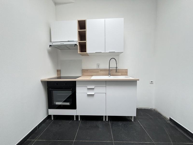 Cuisine aménagé et équipé (plaques, four, hotte, rangements).