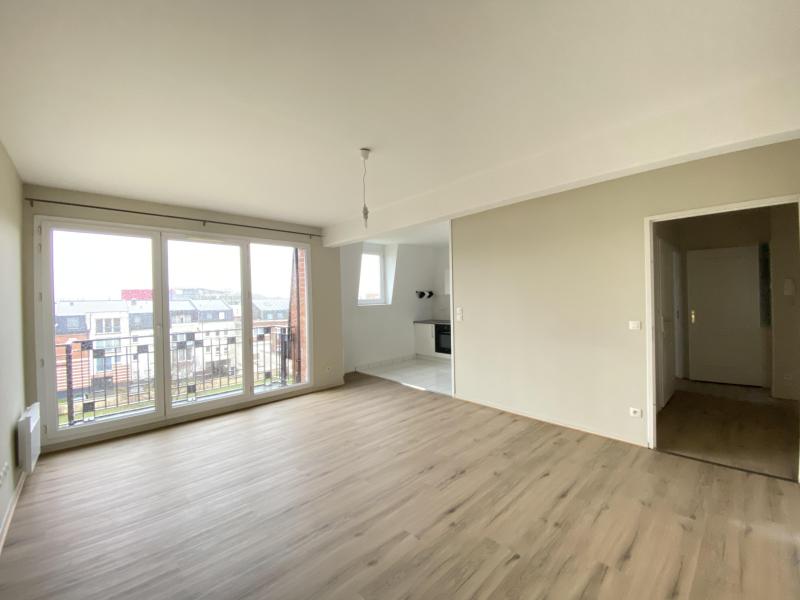 Un salon-séjour lumineux ouvrant sur un balcon privatif.