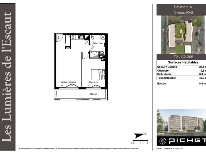 A VALENCIENNES, dans la résidence neuve 'LES LUMIERES DE L'ESCAUT', nous vous proposons ce T2 de 45m². Il se compose d'une entrée avec placard, d'un séjour/cuisine de 26.5m², donnant sur un balcon de 8m², d'une salle d'eau avec WC, et d'une chambre de 12.5m².