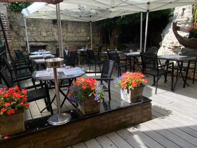 Rez-de-chaussée : élevé partiellement sur cave, un local à usage de restaurant, d'une superficie au sol d'environ 90 m², prolongé par une véranda, une terrasse et un jardin.