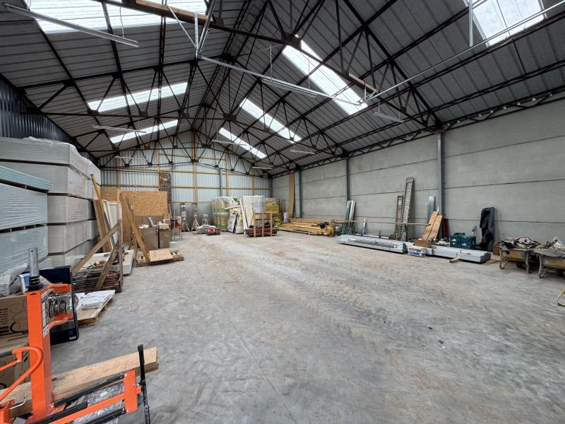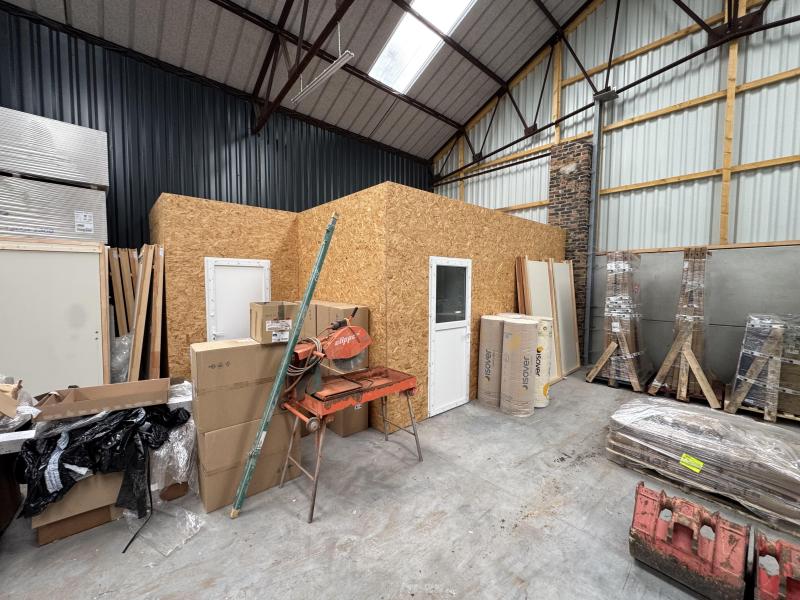 Entrée dans le bâtiment par porte sectionnelle 4x4m motorisée et une porte de service.