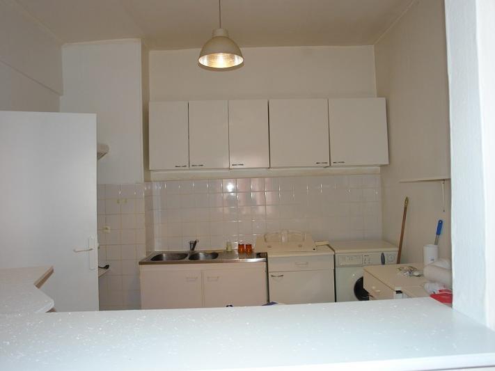 Petite entrée, salle de bains, grand séjour lumineux, cuisine américaine équipée + lave-linge avec séchante.  Convecteurs électriques.