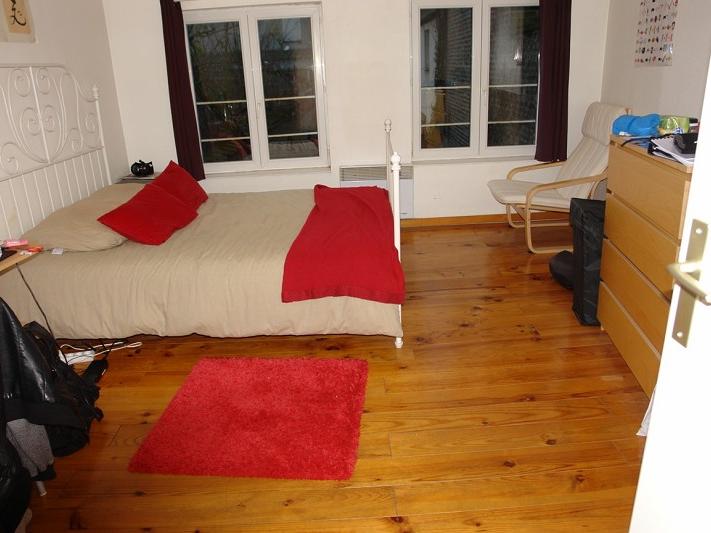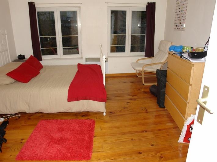une grande chambre (lit 2 personnes, une armoire, un bureau