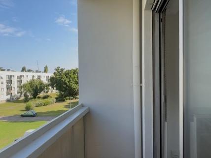 Un appartement 3 pièces de 57m² comprenant un salon avec balcon, deux chambres, une salle de bain avec baignoire, une cuisine équipée et meublée, un WC séparé.