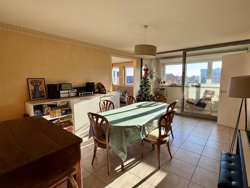 Tourcoing, plein centre ville, en résidence de bon standing sécurisée avec toutes commodités à proximité, appartement de type 5 de 110.46 m² comprenant salon séjour très lumineux de 36 m², cuisine équipée possibilité repas, 3 belles chambres, salle de douche, nombreux placards, loggia, cave, parking souterrain, menuiseries PVC récentes, jolie vue, très bon état, charges annuelles 5400 euros.
