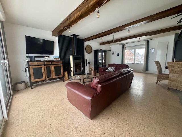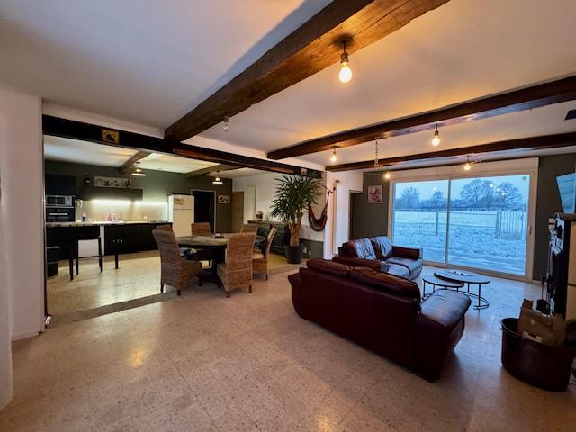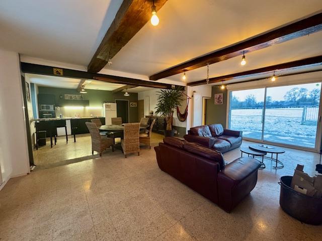 MAROILLES 243800.00 euros FAI Corps de ferme, en partie rénové, au c?ur de la campagne avesnoise, bâtie sur et avec plus de 1,3 hectare, vous enchantera par ses volumes, ses nombreuses possibilités d'évolution et son exposition plein sud. Idéalement pensé pour les amoureux de la Nature ou passionnés de chevaux, la partie habitation développe 160 m² habitables comprenant, vestibule et dégagement, bureau(dressing), chambre, grand séjour de près de 70 m² avec espace cuisine ouvert, une salle de douche et un wc indépendant. A l'étage, un grand palier avec chaufferie et deux chambres restent à rénover. Des surfaces annexes, greniers aménageables, grange, box, double garage , atelier, complètent l'ensemble pour environ 175 m². Système de chauffage central au gaz récent. L'avis du Pro : Vue imprenable sur le bocage avesnois, du volume , faible charge foncière!