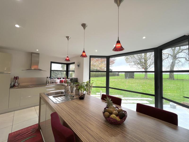 Rez-de-chaussée : des espaces de vie somptueux; Hall d?entrée cathédrale avec vestiaire et WC; Vaste cuisine ouverte sur salle à manger, donnant accès direct à la terrasse; Salon chaleureux avec cheminée insert double face et vue imprenable sur le jardin: Bureau ou chambre avec possibilité d?aménager une salle d?eau; Superbe suite parentale : vue dégagée sur le jardin, dressing, salle de douche, WC