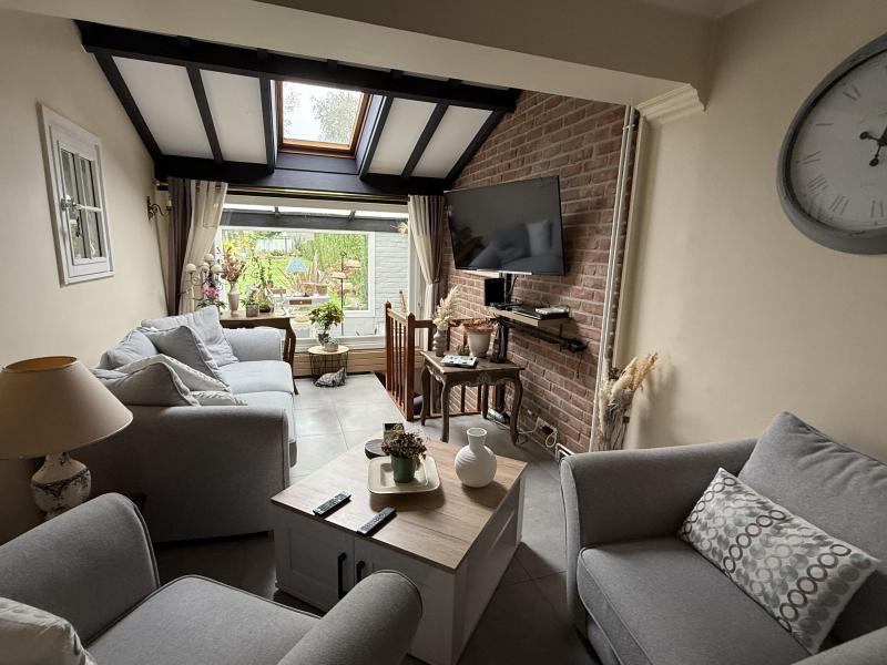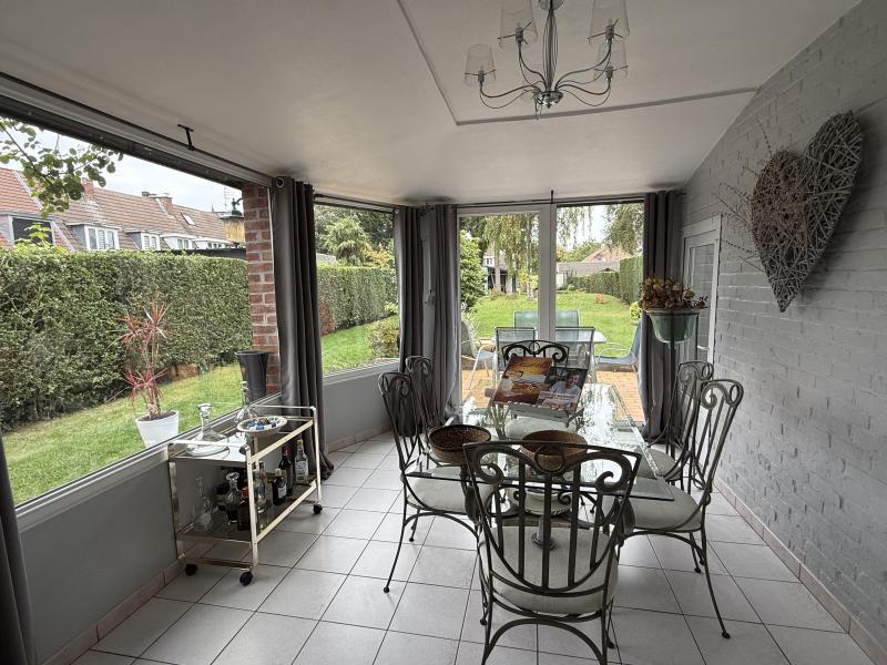 Tourcoing limite Roncq, jolie construction de qualité bâtie sur 784 m² en 1975, une mitoyenneté, salon en L avec feu de bois 33 m², salle à manger/vue sur jardin 12.5 m², cuisine équipée avec possibilité repas, bureau au rez de chaussée, 3 belles chambres et salle de bains à l'étage, cave, véranda, garage et parking 3 voitures, magnifique jardin clos. Parfait état.