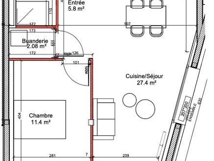 Dans une nouvelle résidence de standing appartement neuf type T2 de 51.26m2 situé au 2ème étage composé d'une entrée, séjour/cuisine, buanderie, chambre, SDB avec WC, terrasse, place de parking en sous-sol, Chauffage individuel gaz