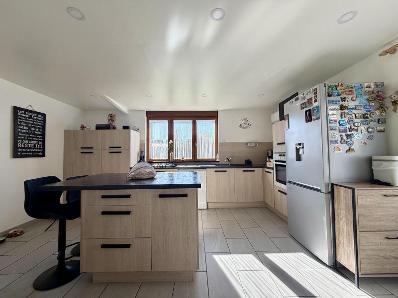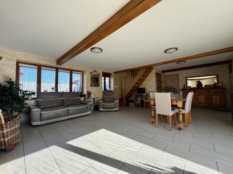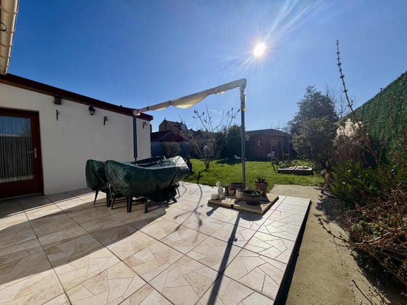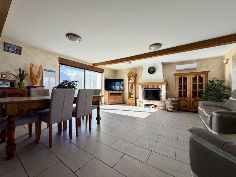 Sur Leers, secteur campagne, en fond d'allée au calme et proche de toutes commodités, large flamande d'aménagement semi plain pied entièrement rénovée d'environ 120m² habitables comprenant en son RDC une belle pièce de vie lumineuse avec cheminée feu de bois/ clime réversible, cuisine équipée, cellier, salle de bains équipée ( douche + baignoire ) avec buanderie, chambre de 13m² et WC indépendant, à l'étage 2 chambres + dressing avec possibilité de SDB, un parking privatif de 2 voitures fermé par portail motorisé, garage et jardin d'environ 400m² exposé plein Sud viennent compléter le tout.