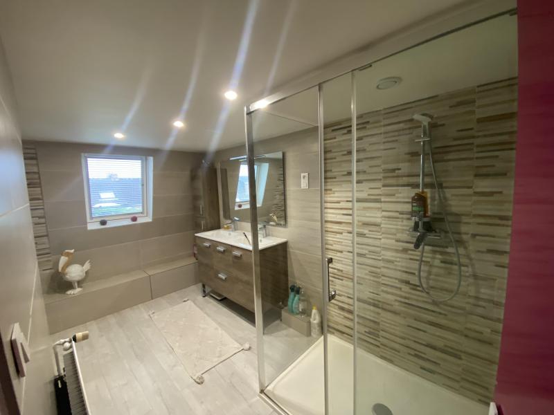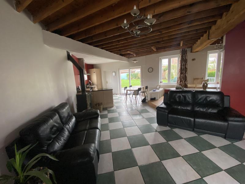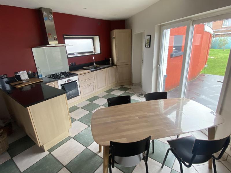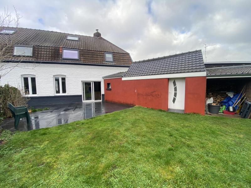 Secteur La Houzarde, grande maison flamande construite sur 400 m², avec 157 m² habitables comprenant couloir, buanderie + coin repassage, wc, salon séjour avec cheminée feu de bois, cuisine équipée US, chaufferie, terrasse, jardin exposé Sud. Au 1er étage 4 chambres, dressing, salle de bains équipée. Au 2ème étage, un bureau et une chambre. Le tout est équipé d'un chauffage au gaz individuel, double vitrage et tout à l'égout.