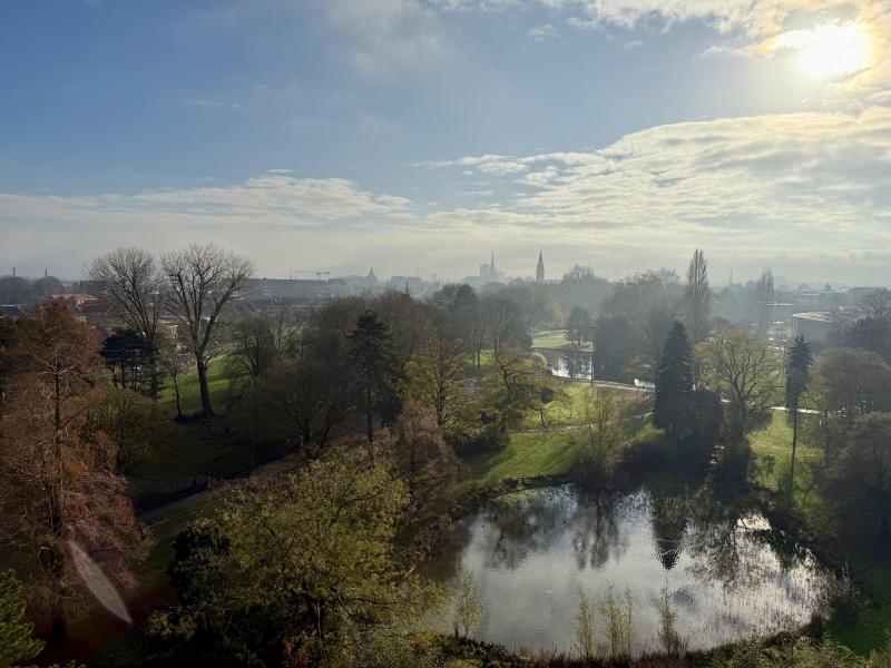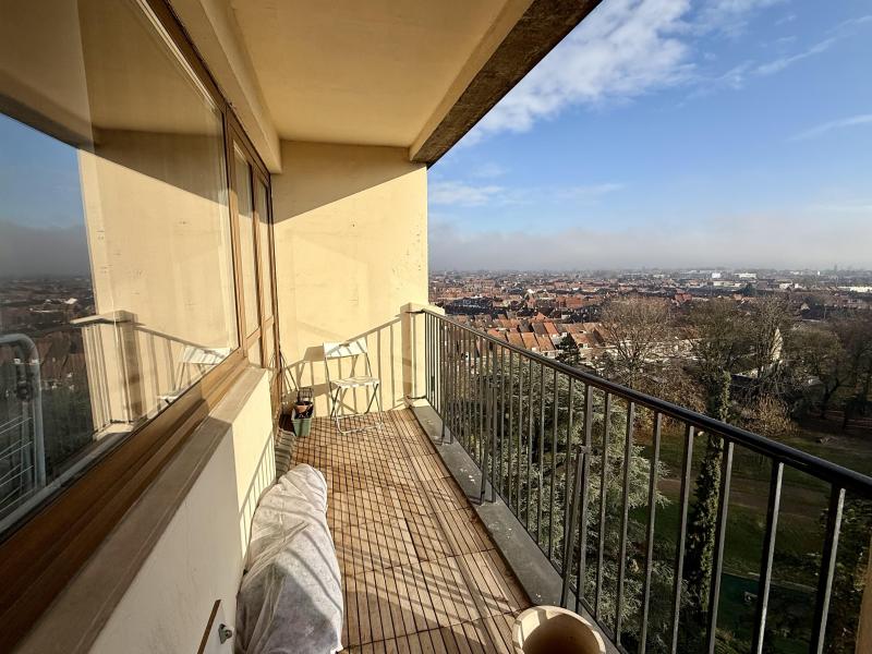 Tourcoing parc Clémenceau et proximité métro, en copropriété sécurisée, très bel appartement de type 4 de 107.40 m² particulièrement lumineux situé au 9ème étage comprenant grand séjour en L de 31.40 m² parqueté, cuisine équipée possibilité repas, 3 grandes chambres, nombreux placards, balcon bien exposé, coursive, cave, vue magnifique sur le parc et ses environs. Charges annuelles 3600 euros tout compris sauf électricité.