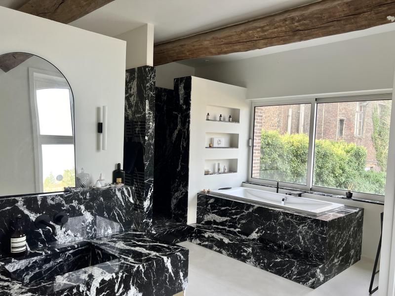 Premier étage: Une suite parentale avec dressing et salle de bains en marbre Nero Marquina; Une bibliothèque; Trois grandes chambres; Une salle de bains indépendante