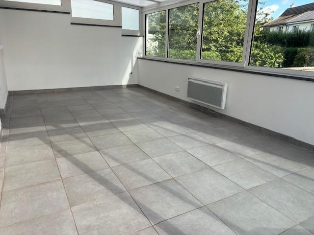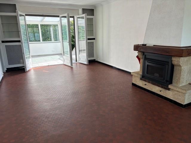 Elle offre 118 m² habitables (possibilité d?agrandissement) et se compose d un vaste hall d entrée, d un séjour traversant lumineux équipé d?un insert à pellets, donnant sur une superbe véranda chauffée offrant une belle vue dégagée sur le jardin. La cuisine spacieuse complète ce niveau.