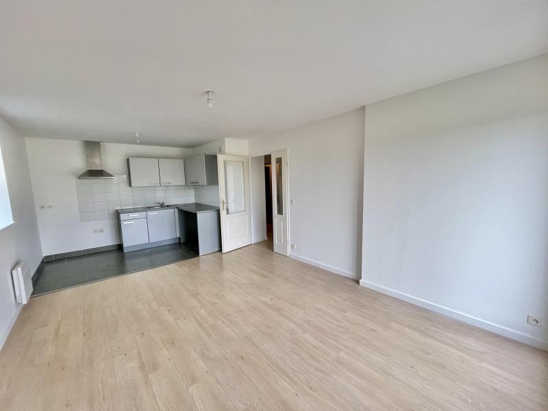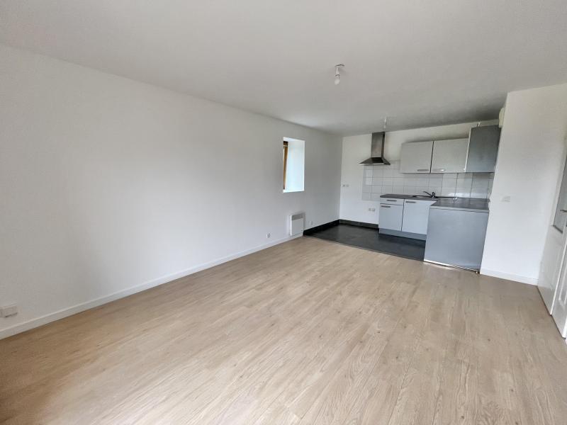 ? Séjour lumineux en parquet avec cuisine ouverte meublée.