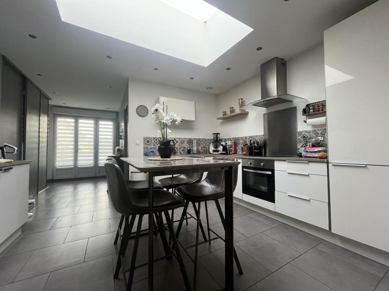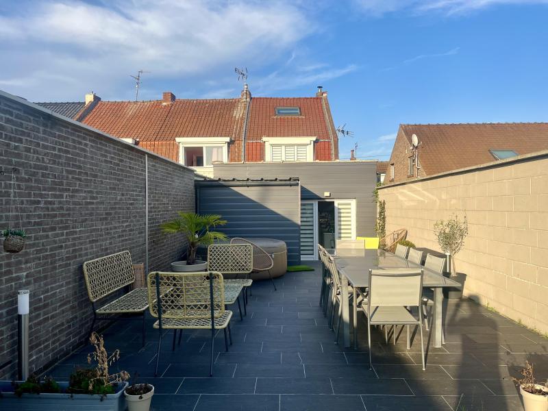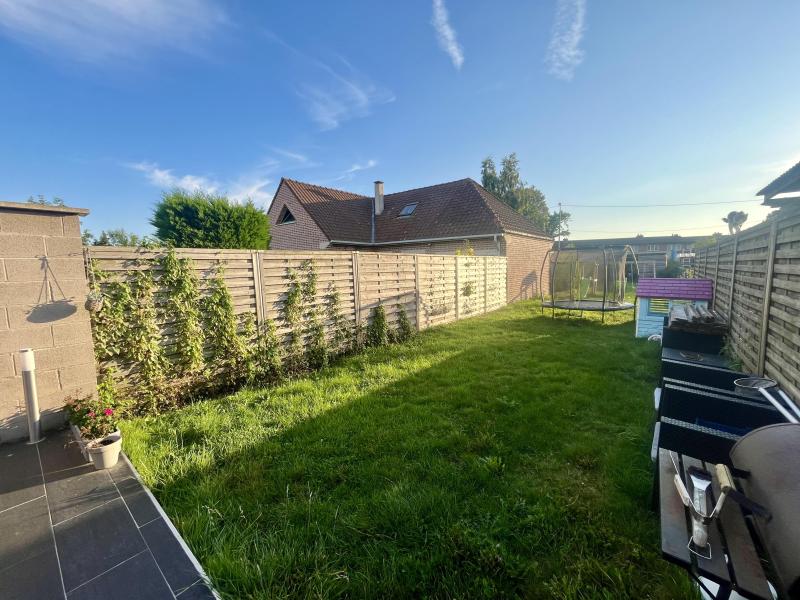 En Exclusivité sur Wattrelos, en Impasse accessible en voiture au calme et proche de toutes commodités, maison semi flamande d?aménagement contemporain d?environ 100 m2 habitables comprenant une belle pièce de vie lumineuse, cuisine équipée, wc indépendant et SDB équipée avec buanderie, à l?étage 3 chambres dont une de 17 m2, un parking privatif de 2V avec possibilité de location d?un garage en face de l?habitation pour 60euros/mois et un jardin de 200 m2 avec sa terrasse de 45 m2 exposée Sud viennent compléter le tout, bien rare sur le secteur à visiter sans tarder.