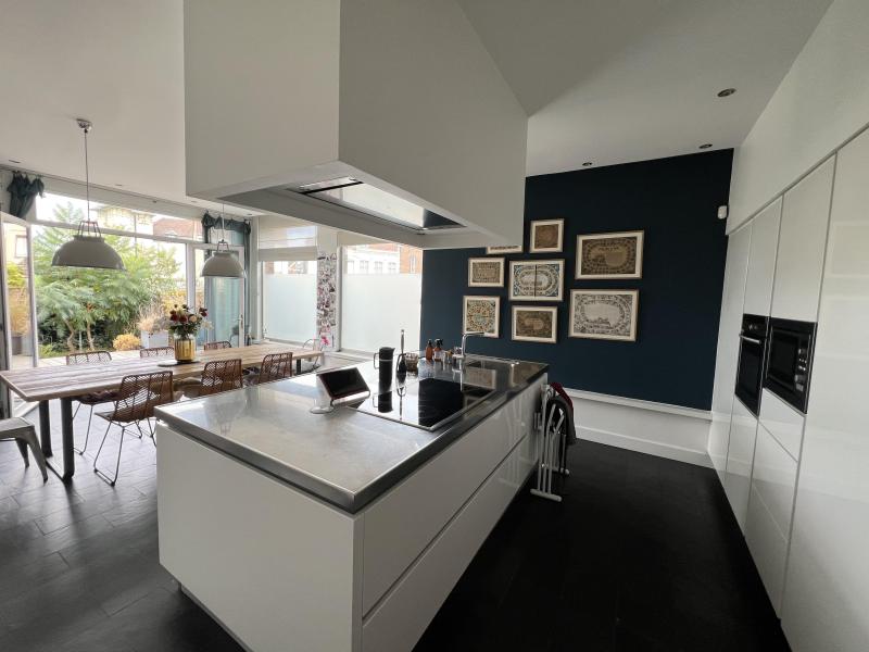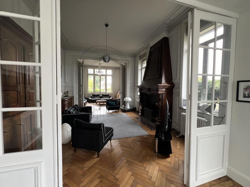 Maison de maître de 1890, entièrement rénovée par l'architecte Pollux, alliant caractère d'époque et prestations contemporaines haut de gamme. Dès l'entrée, hall en double distribution vous accueille avec ses moulures, carreaux anciens, portes et escaliers sur-mesure en bois massif, tous d'origine.