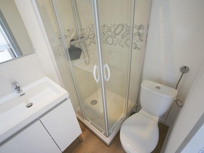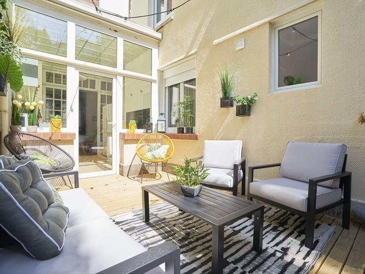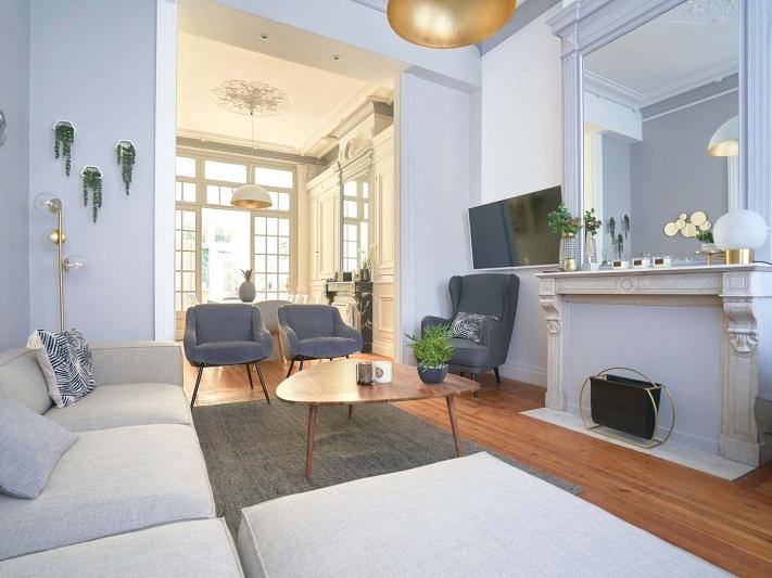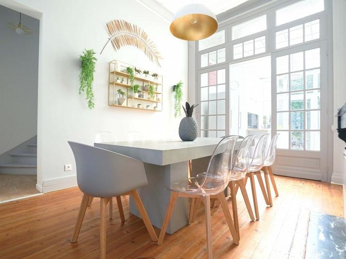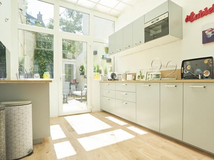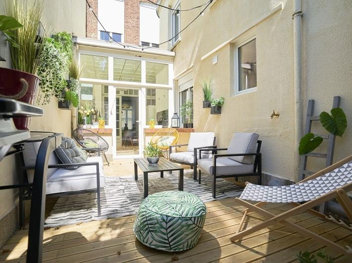Lille secteur Solférino Saint-Michel, maison de 10 chambres exploitée en colocation, grand séjour commun avec cuisine équipée donnant sur terrasse, chacune des chambres dispose d'une salle de douche avec WC, douche et meuble vasque
