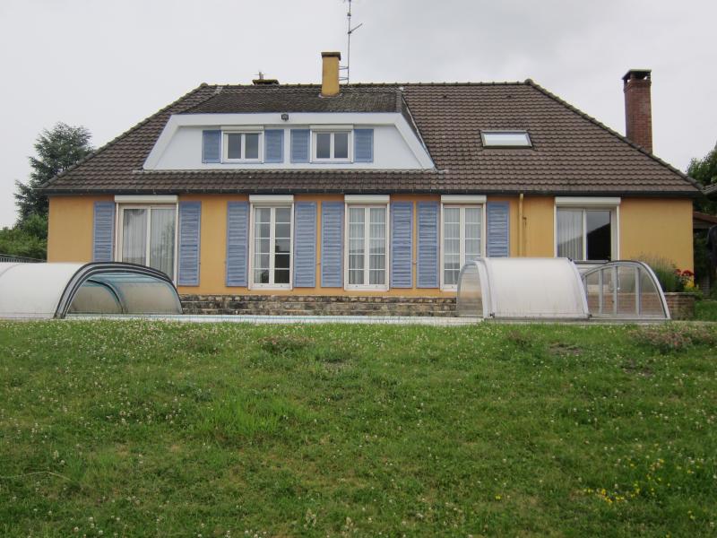 Résidence prisée et sécurisée belle maison semi plain pied d'env 226m2 hab avec piscine 8x4, jardin clos et arboré d'env 1300m2 sur sous sol total sans vis à vis comprenant : hall d'entrée, vaste séjour env 65m2 avec cheminée feu de bois, cuisine avec coin repas, 2 chambres,,sdbains, étage : 3 chambres, sdbains, wc, sous-sol : ccgaz, chaufferie, grande salle de jeux, garage 3 voitures, cave à vins, dbl vitrages, volets électriques,, bien isolée et trés bonne exposition, claire et spacieuse, calme, tous commerces et axes autoroutiers, à voir rapidement . Charges copropriété : 120 euros/an .Prix :389000+2,57% honoraires agence charge acquéreur