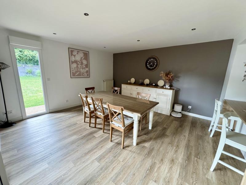 Beau Pavillon individuel de 143 m2 habitables sur 800 m2 de terrain environ comprenant : RDC : Hall d'entrée, WC avec lave-mains, Salon/séjour en L, salle à manger, cuisine équipée. À l?étage : 5 chambres dont 2 communicantes avec salle d?eau, salle de bains, WC.