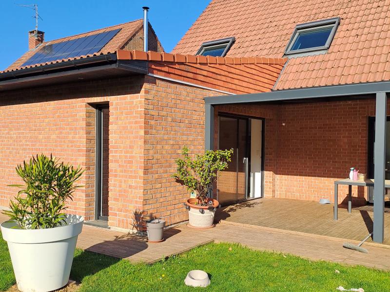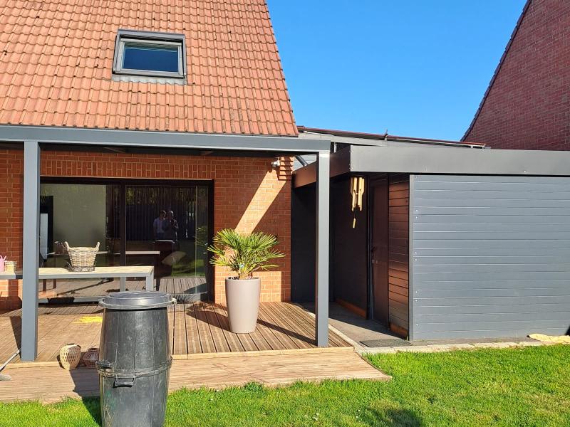 Terrasse, beau jardin exposé sud, Carport, grand garage 2v.
