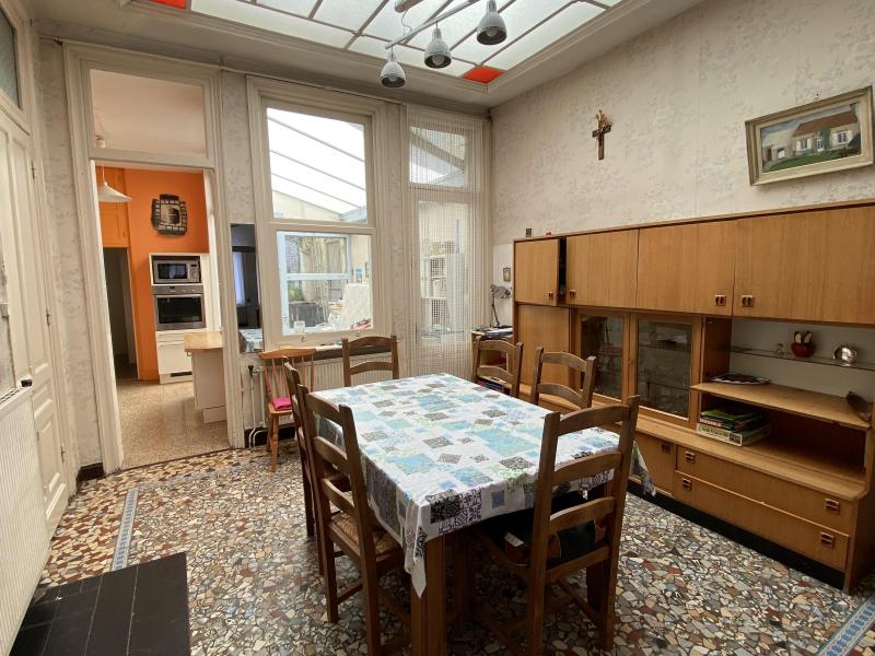 EXCLUSIVITE Tourcoing Brun Pain maison 1930 spacieuse très saine à conforter d'une surface d'environ 119.45 m² habitables comprenant salon feu de bois 36 m², salle à manger 14 m², cuisine équipée, salle de douche récente, 3 chambres au 1er étage , grenier aménageable en 2 chambres au 2ème étage, beau jardin avec atelier et sortie piétonne, chauffage central gaz, toitures récentes, menuiseries pvc.